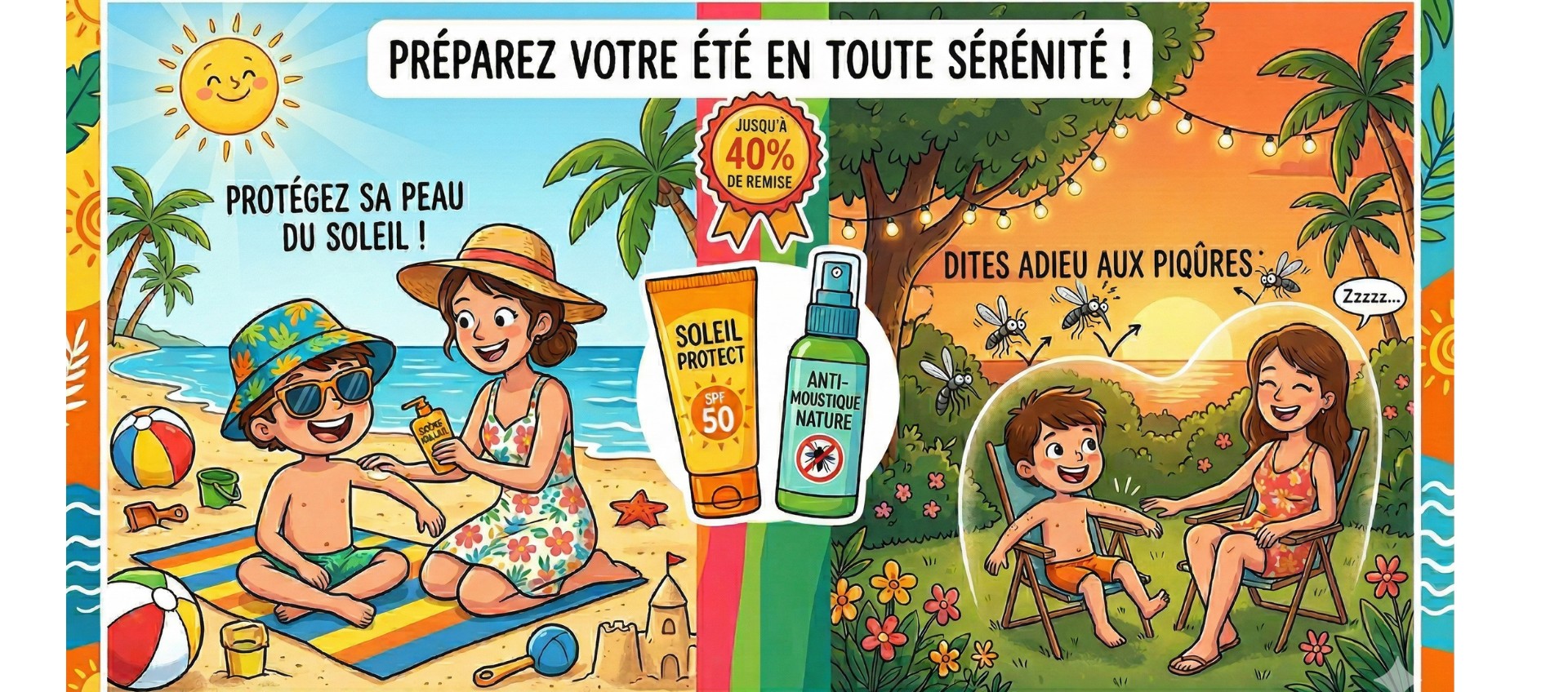 ☀️ L’été s’installe, les promos aussi : jusqu’à -40% sur vos indispensables soleil et anti-piqûres !
