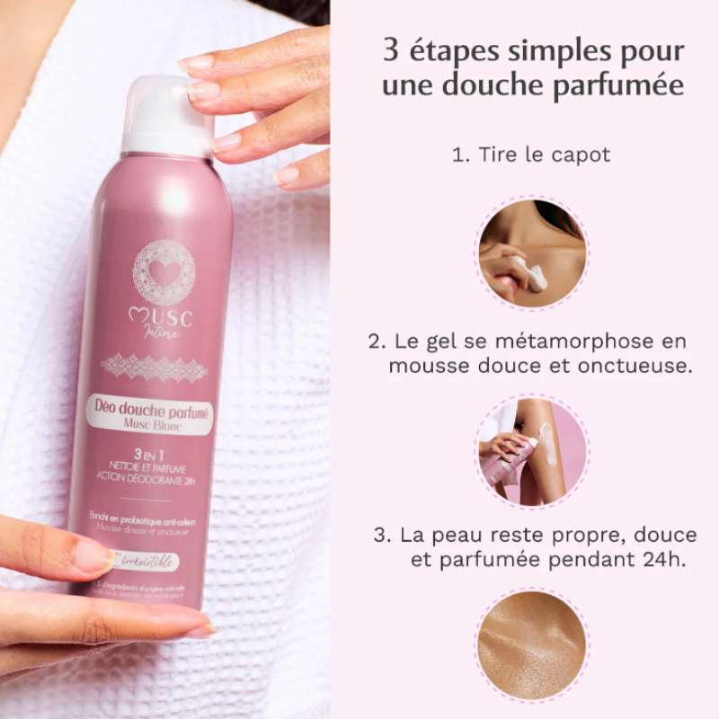 Formulé en France et testé sous contrôle dermatologique, le Déo Douche assure une efficacité déodorante 24H grâce aux probiotiques anti-odeurs. Sans sels d’aluminium, sans savon agressif et respectueux du pH, il nettoie en douceur tout en parfumant intensément la peau.