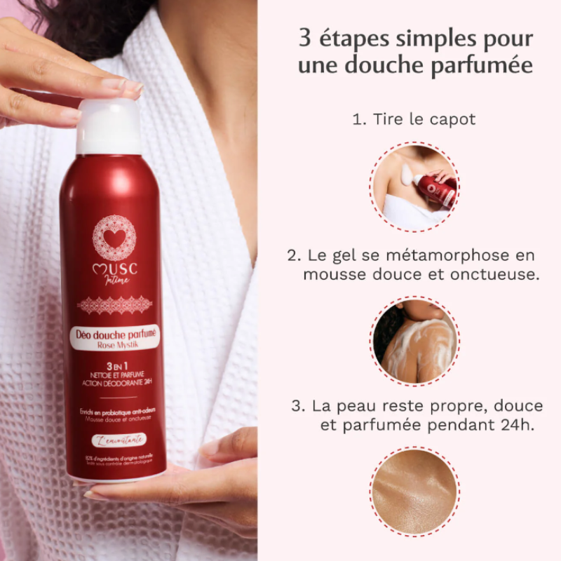 Formulé en France et testé sous contrôle dermatologique, le Déo Douche assure une efficacité déodorante 24H grâce aux probiotiques anti-odeurs. Sans sels d’aluminium, sans savon agressif et respectueux du pH, il nettoie en douceur tout en parfumant intensément la peau.
